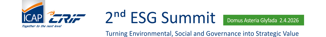 In the context of the General Data Protection Regulation (GDPR) (EU) 2016/679 and National Legislation (Law 4624/2019), we would like to inform you that “2nd ESG Summit”, will be recorded on video and photographs will be taken for the Company's archive and for promotional purposes of the event in mass media/communication channels as well as in corporate media and social networks. For further information regarding ICAP CRIF's privacy policy and for exercising your rights, you may visit the following link.